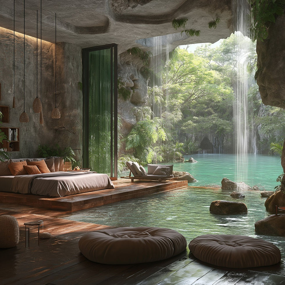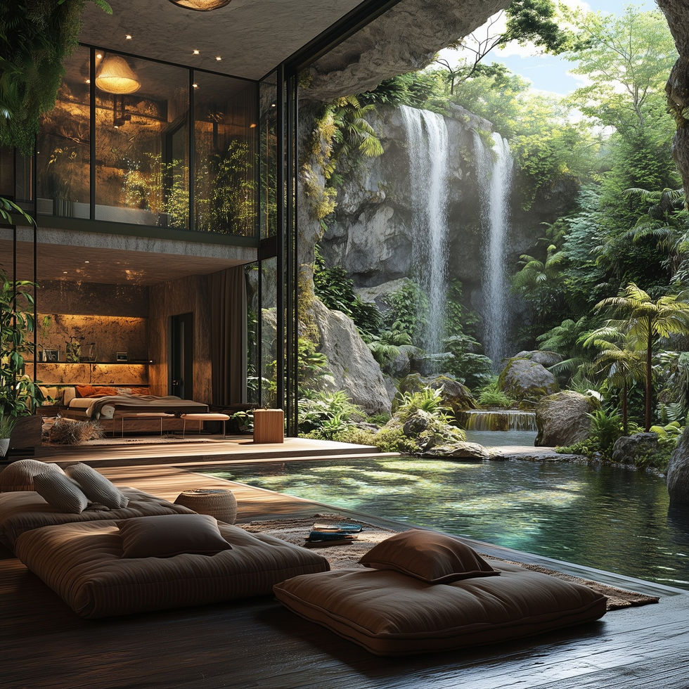 Nestled deep within the lush jungles of Bali, Aqueous Elysium offers a harmonious blend of modern design and nature’s raw beauty. Surrounded by cascading waterfalls and verdant greenery, this exquisite villa invites guests into a world where indoor and outdoor living merge seamlessly. The infinity pool, a marvel of design, spills gently into a natural body of water, creating an unparalleled sensory experience. Crafted with sleek, minimalist architecture, the villa’s open spaces allow nature to flow through, while every detail speaks of sophistication and tranquility. Aqueous Elysium is more than a retreat—it is a sanctuary where the boundaries of luxury and nature dissolve into pure, unspoiled serenity.
