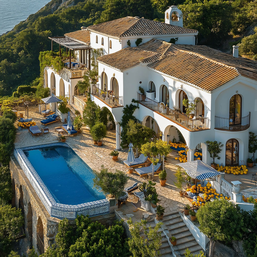 Named to reflect the seamless union of sea (mare) and land (terra), Mareterra is a tranquil haven perched on the Amalfi Coast. Enveloped by fragrant lemon groves, this retreat celebrates the Mediterranean spirit through its handcrafted tiles, sun-soaked terraces, and timeless design. The swimming pools extend out toward the azure sea, blurring the line between the water and sky. With every element, Mareterra honors the natural harmony between its surroundings, offering a serene escape where the beauty of the coast is intertwined with artisanal craftsmanship and understated luxury.