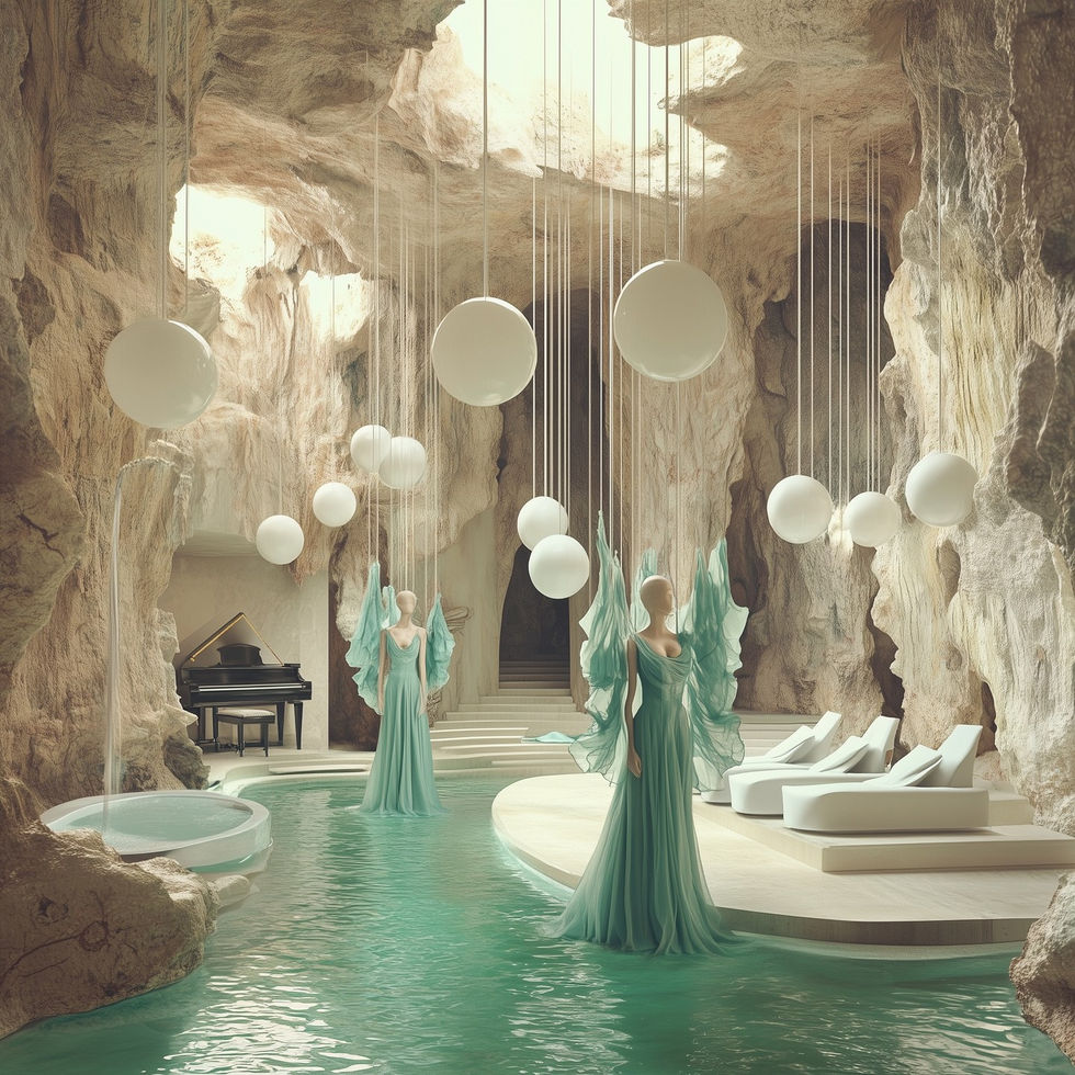 This luxurious villa mirrors that myth, where waterfalls from the infinity pool spill into the sea, seamlessly blending nature and architecture. Elegant stone pathways, soft canopies, and the boundless ocean evoke a timeless, ethereal escape. In Neritheia’s Lament, myth and modern luxury unite, crafting a serene refuge from the world above.