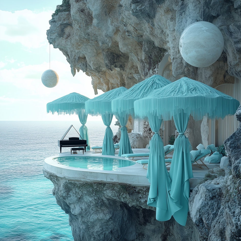 Perched on a secluded cliffside, Neritheia’s Lament draws inspiration from the ancient sea nymph Neritheia, the forgotten consort of Poseidon. According to legend, she retreated into the depths, creating a hidden sanctuary where her sorrowful song echoed through the waves of what is now Greece, once called Hellas.